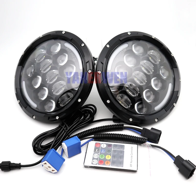 BEST QUALITY 7 inch LED Headlight DRL Halo Angle Eyes RGB with Remote Control for Jeep Wrangler JK LJ CJ Hummer