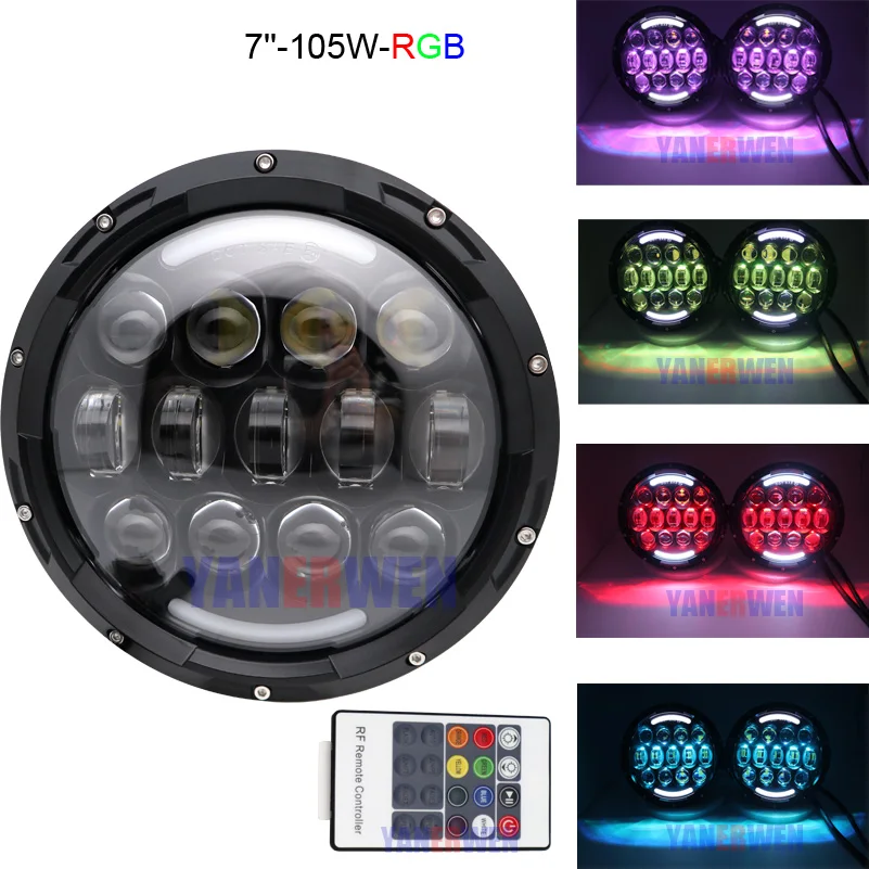 7 inch LED Headlight DRL Halo Angle Eyes RGB with Remote Control for Jeep Wrangler JK LJ CJ Hummer