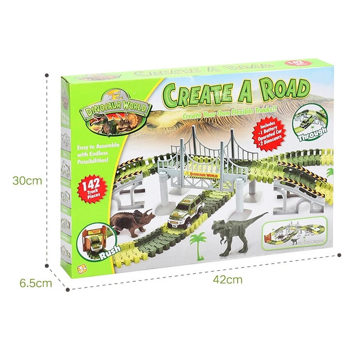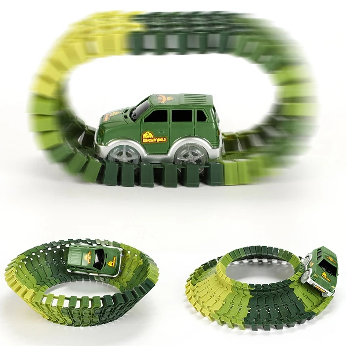 Hot Sale 153Pcs Kids Diy Assemble Jurassic Dinosaur Rail Race Track Car Toy Rail Blocks Railway Roller Coast