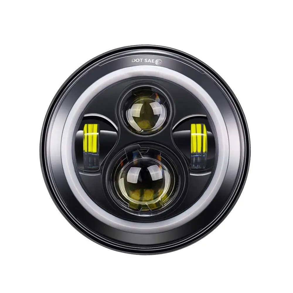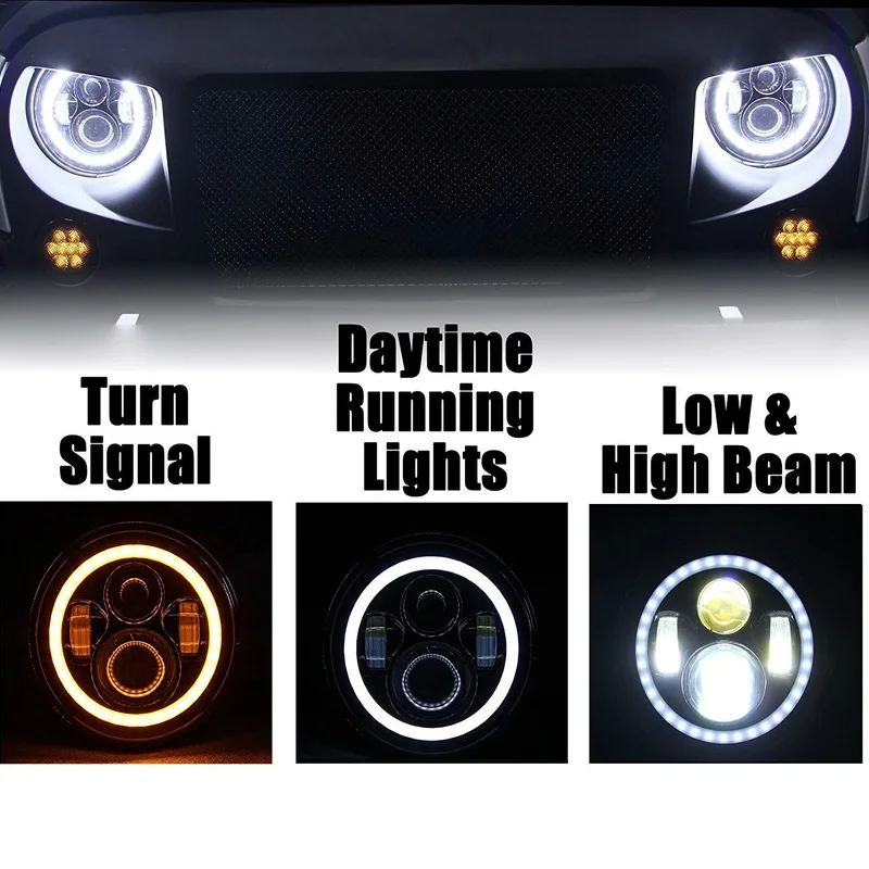 ORIGINAL Motorcycle 7" LED Headlights 60W Hi-Lo Beam Halo Angel Eyes DRL Amber Turn Signal Lamp for Jeep Lan